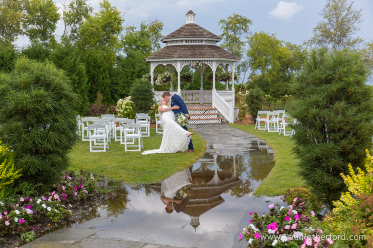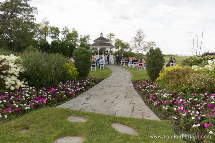 The rain begins the minute the bride starts her procession to the gazebo at Mission Point Resort. You can see the black and purple clouds moving quickly toward us.