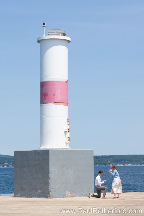 This gentleman called to book a surprise Engagement session on the Petoskey Lighthouse pier. This can be a tricky location being as the couple needs to walk by in order to get to the lighthouse. I am REALLY good at playing it cool and not getting caught. In fact, a perfect record, knock on wood. 🙂 Petoskey Lighthouse Pier Bayfront Park Engagement